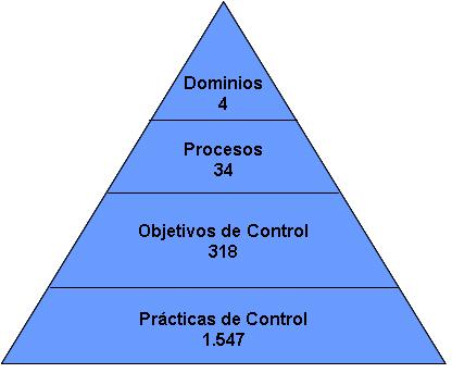 Los “Objetivos a Controlar” se agrupan en 34 “Procesos”, denominados “Objetivos a Controlar de Alto Nivel”, los que a su vez se organizan en 4 “Dominios”, que gráficamente se representan en la figura siguiente.
