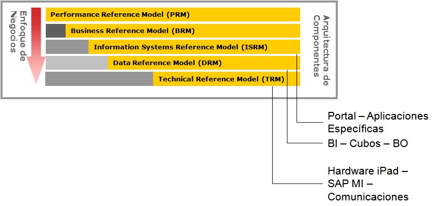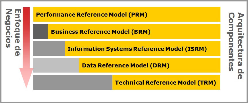 Está basada en el modelo la Federal Enterprise Architecture (FEA). Su representanción se muestra en la figura siguiente: