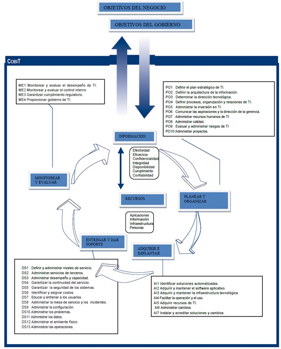 La figura siguiente muestra los procesos del área informática que considera COBIT.