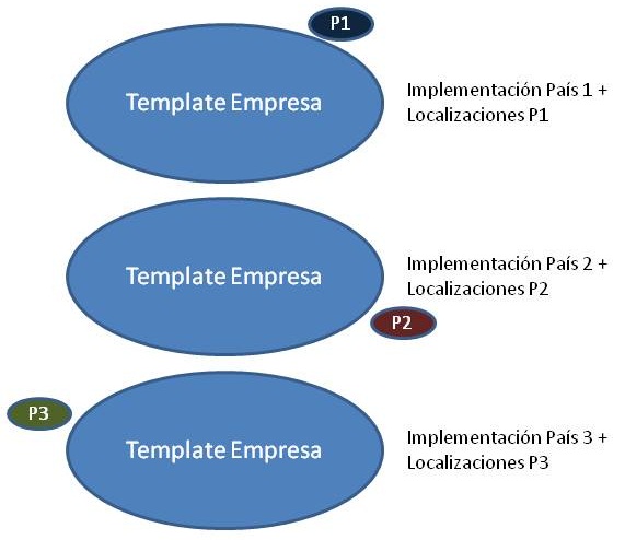 Ejemplo: Para una empresa que cuenta con tecnología SAP, la generación del template corresponde al Proyecto de Implementación, y la habilitación en las distintas unidades –países son los Roll-outs [4].