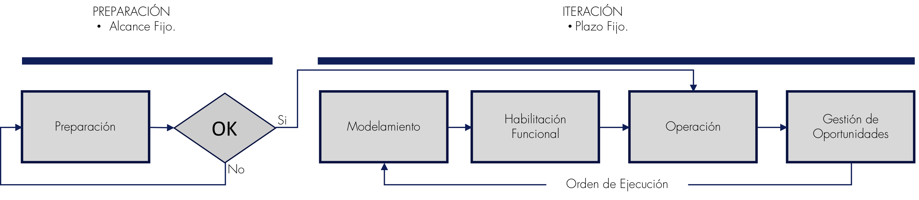 Para el Mejoramiento Continuo es necesario ejecutar acciones que mejoran aspecto específicos e incrementales de un Proceso / Subproceso, a estás se les denomina Iteraciones [2], según las Metodologías Ágiles. Para ejecutar una Iteración se deben satisfacer previamente en la Fase Preparación las condiciones siguientes:
